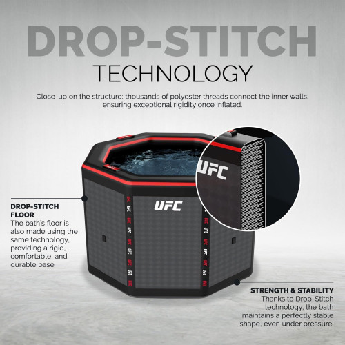 - En menos de 5 minutos, gracias a la tecnología Drop-Stitch, puedes preparar tu Ice Bath UFC para una sesión de terapia de frío que revitaliza el cuerpo y la mente después de un entrenamiento intenso. En menos de 5 minutos, gracias a la tecnología Drop-Stitch, puedes preparar tu Ice Bath UFC para una sesión de terapia de frío que revitaliza el cuerpo y la mente después de un entrenamiento intenso.