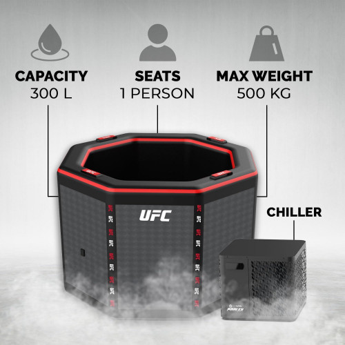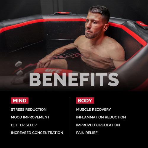 - El Ice Bath UFC es una piscina revolucionaria especialmente diseñada para atletas y entusiastas del deporte que desean maximizar su recuperación. Fabricado con materiales de alta calidad, garantiza una inmersión estable y un aislamiento térmico excepcional para mantener la temperatura ideal para la terapia de frío.