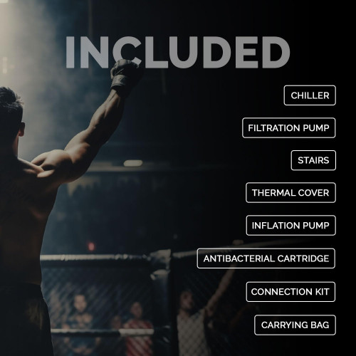 - El Ice Bath UFC es compatible con cubitos de hielo para enfriar rápidamente el agua, pero también se puede utilizar con un chiller (enfriador), viene con un kit de conexión. El chiller enfría el agua hasta 3 °C, permitiendo un control preciso de la temperatura sin tener que comprar bolsas de hielo para cada uso.