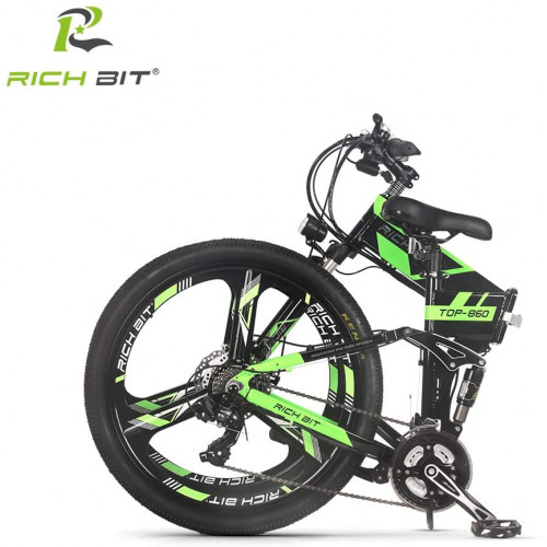 RICH BIT Bicicleta Eléctrica 250W Bicicleta Plegable de Montaña LG Li Batería 36V * 12.8 Ah Smart eBike 26 Pulgadas MTB RT-860 para Hombres/Adultos