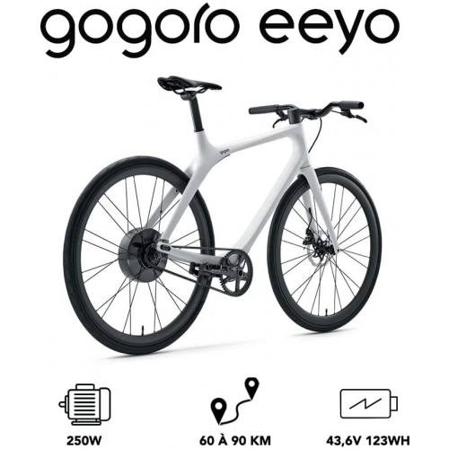 - Con 11,9 kg, Gogoro EEYO 1S es dos veces más ligero que las bicicletas eléctricas convencionales. La ausencia del tubo de sillín y el uso de fibra de carbono reforzada con Kevlar permiten a la bicicleta mejorar su resistencia, ser ultraligera, pero también de apagado