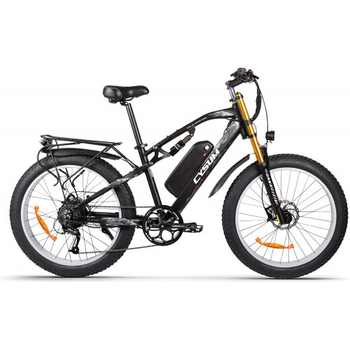 - La bicicleta de montaña eléctrica está equipada con una batería de litio con una capacidad de batería de 48 V / 17 Ah. La gran capacidad puede soportar una distancia de viaje de 50 km. El tiempo de carga total es de 5-7 horas y el ciclo de carga supera las 1500 veces.