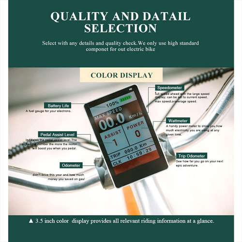 - ???? Motor de alta velocidad sin escobillas】: 350W / 500W / 1000 WMOTOR que funciona de alta velocidad y torque cuando ITI en modo eléctrico y cuando la batería se agota, no hay un peso adicional para el pedal. Hemos mejorado la eficiencia del motor y el preformance en gran situación.