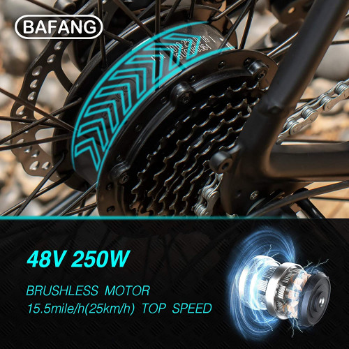 - ✅【Potente Motor de BAFANG】 ????Nuestra bicicleta electrica adultos está equipada con el motor sin escobillas de 250W de BAFANG, que está montado en la parte trasera. Ofrece un excelente rendimiento con una velocidad máxima de 25-30km/h. La bicicleta MTB ESKUTE facilita el pedaleo y es ideal para las colinas empinadas y el ciclismo de larga distancia, para que puedas relajarte y disfrutar de los paisajes hermosos a lo largo del camino
