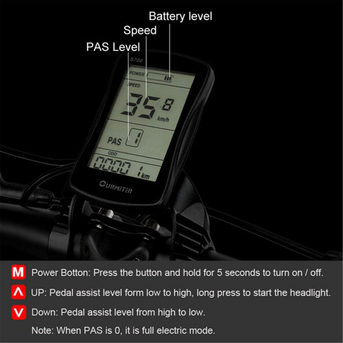 - 【Pantalla】 Equipado con una pantalla LCD multifunción de 3,5 pulgadas, que puede indicarle los datos en tiempo real, como la velocidad, el nivel de la batería, el odómetro, etc., también puede verificar el error si la bicicleta tiene un problema. El tipo LCD también tiene un sistema de asistencia de pedal de 5 niveles, puede cambiar el nivel de asistencia de pedal según la condición de la carretera convenientemente.