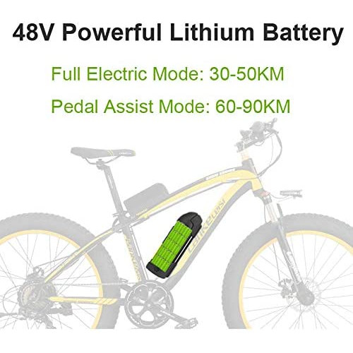 - 【Batería extraíble de gran capacidad】 Equipado con una batería de litio de 48V 10Ah / 17Ah, que está hecha de celdas de batería topbrand 18650 de alto rendimiento, tiene más tiempo de uso, con dispositivo de protección de batería de litio, hazlo seguro. Resistencia hasta 30-50 km por carga, completa por electricidad; Hasta 60-90 km por modo de asistencia de pedal. Tiempo de carga: 4-7 horas.