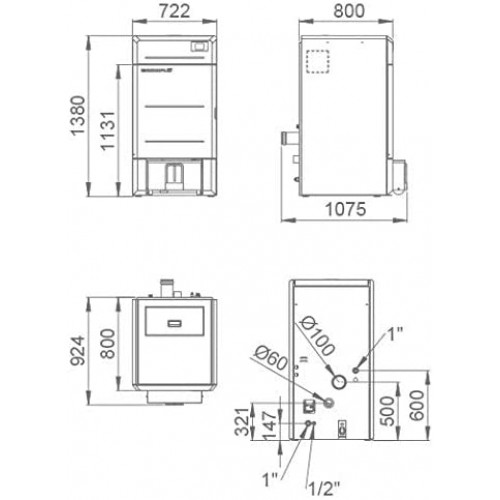 Autonomía mín-máx: 8,9-40h Peso: 280kg Diámetro salida de humos: 100mm