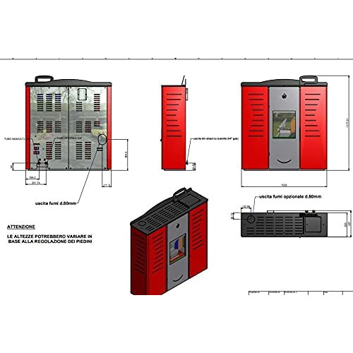 Peso en vacío: 160 kg Tamaño salida de humos: 80 mm Absorción eléctrica: