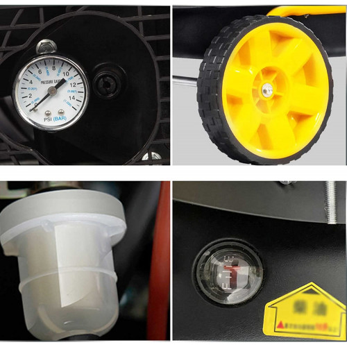- [Protección de seguridad cuádruple]: protección de apagado de descarga; protección contra sobrecalentamiento, apagado automático; apagado automático sin aceite; protección de apagado retardado del ventilador.