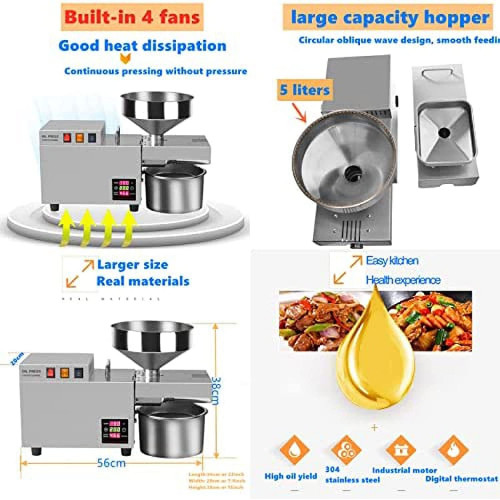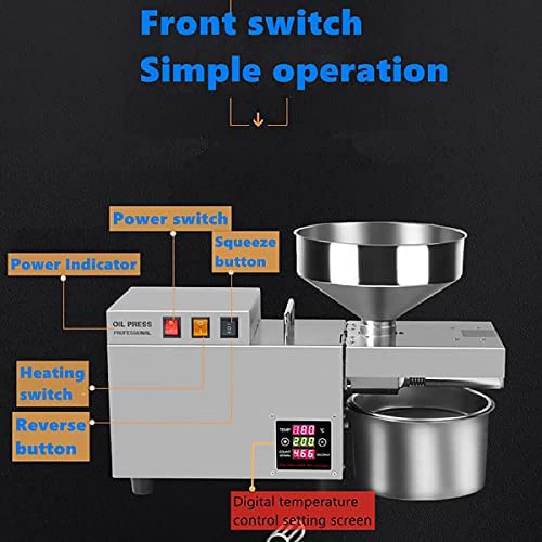 [PRENSADO DOBLE EN FRÍO Y EN CALIENTE]: Nuestra prensa de aceite admite prensado en frío y prensado en caliente: el prensado en frío puede retener mejor el valor nutricional del aceite; el prensado en caliente es más eficiente y el aceite es puro y aromático. Puedes elegir la forma en que te gusta exprimir el aceite.
