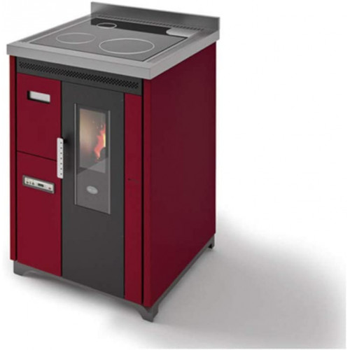 Esta cocina económica de pellets ventilada, dispone de un sistema frontal de carga de pellets muy fácil de usar que la hace realmente práctica en el uso diario. Su amplia placa superior, disponible en acero o vitrocerámica, es perfecta para cocinar los alimentos aprovechando el calor desprigionado. El escape de humos es superior o posterior. En el período de invierno, la ventilación forzada permite calentar de forma rápida y uniforme todo el entorno, mientras que en el verano se puede cocinar excluyendo la ventilación forzada. Diseñado para ser funcional, incluso el diseño no ha sido descuidadoso, ya que el amplio panel de vidrio hace que el fuego sea a la vista. Placa de metal con certificado para cocinar. Frontal puerta de cristal serigrafiado negro Ventilación forzada con posibilidad de excluirla del verano. Cajón frontal extraíble para la carga de pellets 10 (5+5) potencias de funcionamiento Pantalla con menú en 6 idiomas. Cajón ceniza extraíble para recuperación de cenizas Salida de humos superior - trasera. Termostato de seguridad. Preparado para termostato externo. Presostato de seguridad Cronotermostato Datos técnicos: Potencia quemada: máx. 7,5 kW ? Mínimo 2,8 kW Potencia de calentamiento máxima: 6,7 kW ? Mínimo 2,5 kW Eficiencia energética A+. Rendimiento: Pmax 88,5% ? Pmin 89,1% Valor de CO con 13% de O2 (%): Pmax 0,019% - Pmin 0,011% Consumo horario pellet: máx. 1,6 kg/h - mín. 0,6 kg/h. Capacidad del depósito: 16 kg. Tamaño de la zona calefactable: 70 ? 160 mc Distancia mínima de la pared inflamable: lado: 20 cm, parte trasera: 1 cm, parte delantera: 100 cm. Tensión de alimentación / Freq. : 230V ? 50 Hz Potencia nominal eléctrica: 320 W. Medidas: L 59,8 x P 61,8 x H 91,6 cm Peso: 133 kg. Cámara de combustión de acero Brasero de acero inoxidable. Cumple con la normativa EN14785 - BImSchV