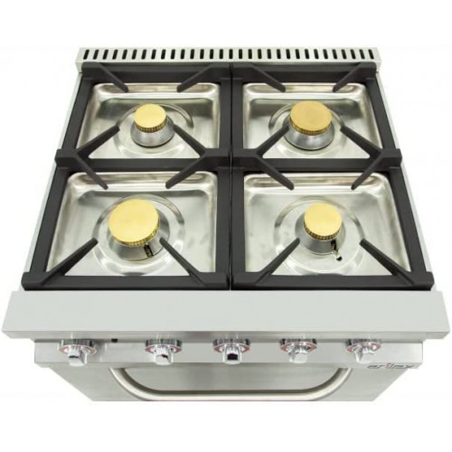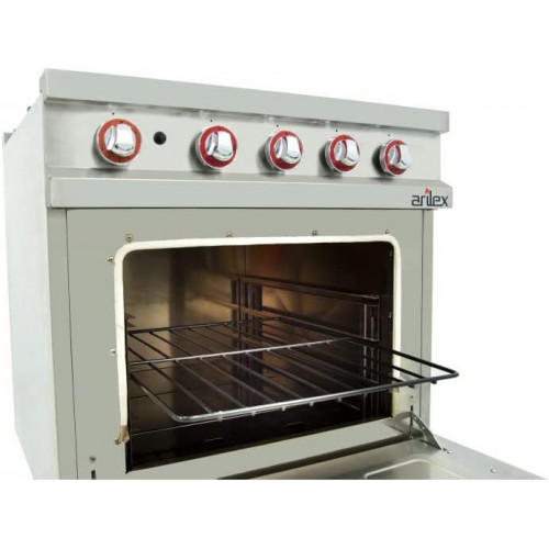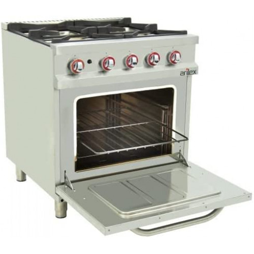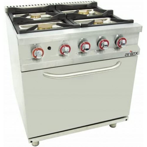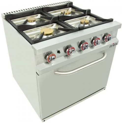 Arilex Cocina de gas | Fogones superiores de hierro fundido y latón de alto poder calorífico con termopar y llama piloto. Gracias a nuestro sistema Easy que permite el desmontaje del quemador y la bandeja sin herramientas, podemos acceder al interior en condiciones óptimas de visibilidad y espacio. Así podemos reemplazar fácilmente los inyectores, termopares, grifos de gas, quemadores, pilotos... Horno GN2/1 con quemador de acero inoxidable de alto poder calorífico. Equipado con válvula termostática, encendido piezoeléctrico, termopar, llama pilota, rejilla antipunta y resistente de fibra de vidrio de estanqueidad. Dimensiones internas del horno: 540 x 650 x 380 mm. Chimenea baja altura para el uso de ollas grandes. Estructura, paneles, estante y chimenea de acero inoxidable para permitir una mayor durabilidad, robustez, fiabilidad y facilidad de limpieza. La serie dispone de la instalación para gas propano y butano y se incluyen inyectores para cambiar al gas natural. Rejilla de hierro (370 x 300 mm), gran robustez y totalmente desmontable. Patas de acero inoxidable muy robustas y regulables en altura. Quemadores: 4 Potencia quemadores (KW): 2 x 5,5 + 2 x 7,5 Potencia horno (KW): 7,5 Potencia (KW): 33,5 Peso (Kg): 89 Exteriores (largo x ancho x alto) mm: 800 x 750 x 900 mm |