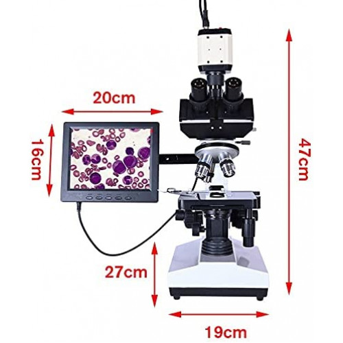 WDBBY Laboratorio Profesional Biológico HD Microscopio Trinocular Zoom 250 0X + USB Digital electrónico CCD Cámara + 8 Pulgadas LCD