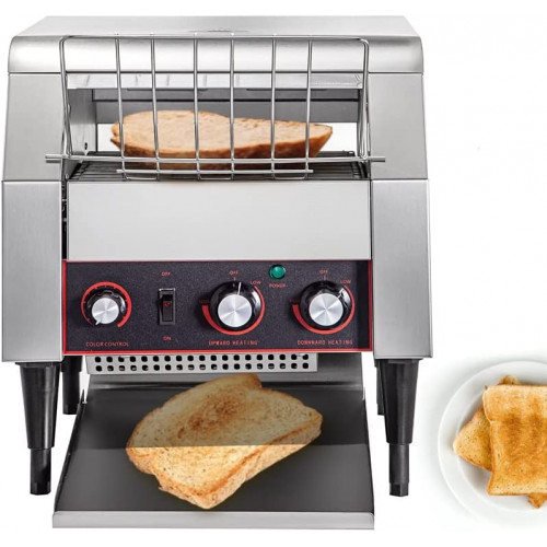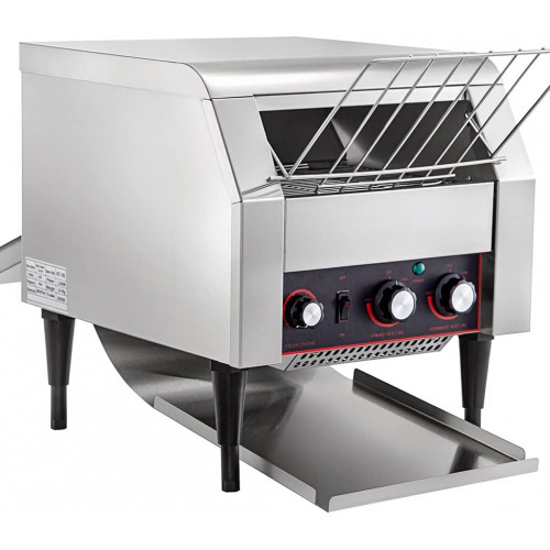 Nuestros bastidores de tostadora transportadora están hechos de acero inoxidable apto para uso alimentario para mayor durabilidad. Esta tostadora transportadora comercial puede tostar hasta 150/300/450 rebanadas de pan por hora. Podrá deleitar a su invitados con pan de la más alta calidad y una espera corta. Nuestras tostadoras comerciales de cinta transportadora son fáciles de operar con un panel de control claro. Puede ajustar libremente la velocidad de transporte y la temperatura de la calefacción superior e inferior tubos de acuerdo a diferentes gustos. Bandeja de migas extraíble para facilitar la limpieza. Las tostadoras de pan comerciales cuentan con rejillas de ventilación para garantizar una buena disipación del calor. Perfecto para todo, desde rebanadas blancas tradicionales hasta mitades de bagel de trigo abundantes, bollos, donas y más. Dimensiones: 16,5 x 18,4 x 15,2 cm