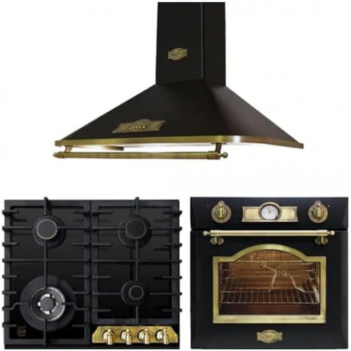 Kaiser Juego de estufa de gas EH 6355 ElfEm + KCG 6335 ElfEm + A 6315 ElfEm, estilo retro empotrable, campana extractora [Clase de eficiencia energética A]