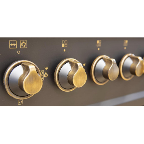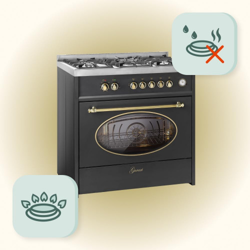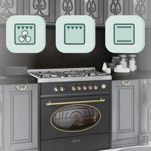 Cocina de gas GURARI GCH E 914 BL r, retro, gas eléctrico, 90 cm,121 l, 8 funciones, aire caliente, grill, 5 quemadores, 4 kW, gas natural, gas propano, incl. adaptador WOK [Clase de eficiencia energética A]