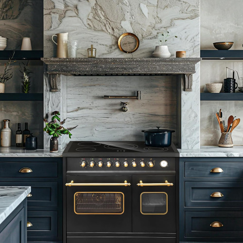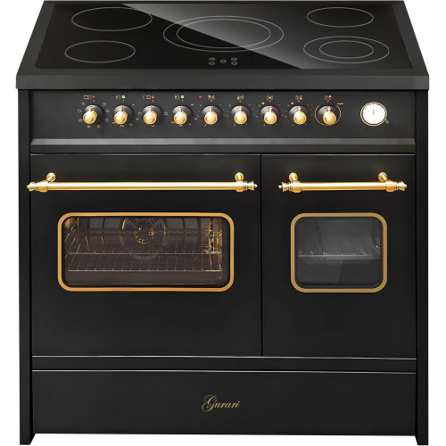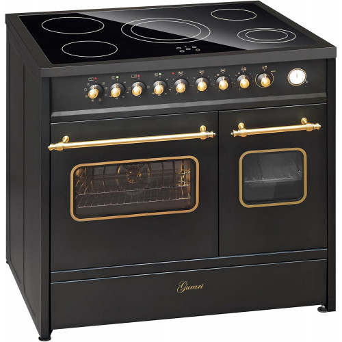 GURARI Cocina eléctrica de pie GCH E 912 DF BL r cocina de cerámica de vidrio 90 cm Negro rango cocina eléctrica doble horno [Clase de eficiencia energética A]