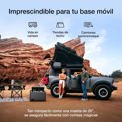 - Compatibilidad todoterreno: el aire acondicionado portátil EcoFlow WAVE 3 cuenta con un diseño compacto de 50 cm con un mango ergonómico, que se adapta fácilmente a SUV, overlanders y semi-camiones. Su kit de correas mágicas se monta de forma segura en techos o plataformas de camiones, enfriando eficazmente los espacios de 11 a 17 m2 para aventuras al aire libre verdaderamente diversas.