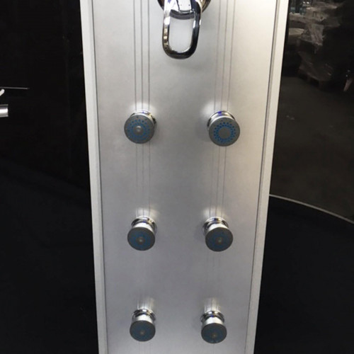 - Perillas de cromo Compartimento de almacenamiento de vidrio Control de agua caliente - agua fría Masaje de pies Baño antideslizante Drenaje de agua Control de ventilación Altavoces estéreo Vidrio antichoque templado y oscurecido de 5 mm