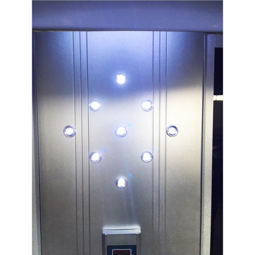 - Gárgola de alta cascada central con luces de cromoterapia Contraventanas de vidrio oscurecidas Radio Panel de control Base reforzada de ABS Cierre magnético Columnas de aluminio satinado Descarga de ventilación