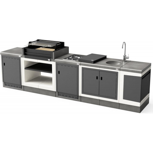 MAESTRO FERRETERO TUOZI - Pack 4 KITAWAY [F] – Cocina DE Exterior KITAWAY Grill – Barbacoa Modular con Parrilla de Acero Inoxidable, Fregadero, Soporte y Reciclaje (332 x 63 x 115 cm)
