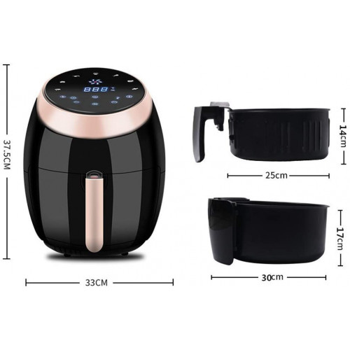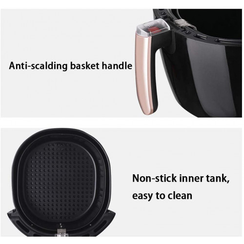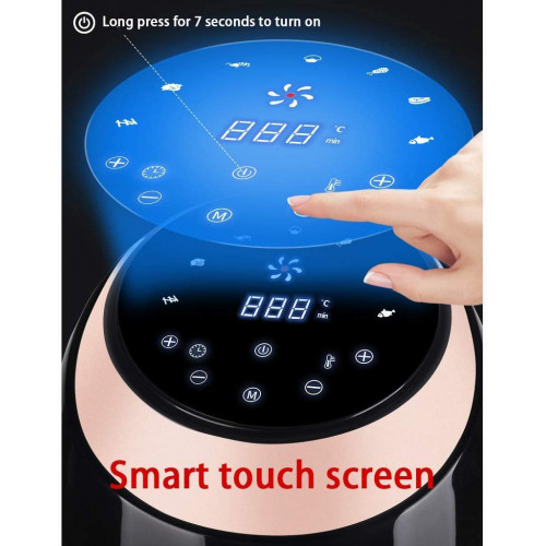 - ★ Botones de pantalla táctil inteligente, operación simple y conveniente. Desengrasado a alta temperatura a 200 ℃, expulsando la grasa de los alimentos. No es necesario utilizar aceite, disfruta de alimentos saludables bajos en grasas.