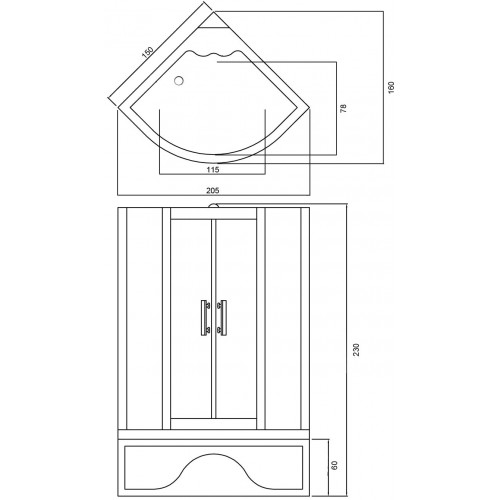 Bañera de hidromasaje cabina de baño 150x150 h 230 Ducha Radio Bañera