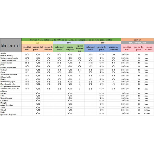 - Casi no hay materiales que no puede cortar: puede cortar productos de madera, acrírico, piel, jade, silicona, productos de PVC y etcétera.