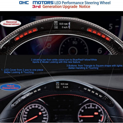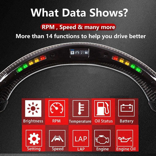 - 【MULTIFUNCIONAL】Este volante LED le permite leer datos en tiempo real desde la pantalla LCD integrada en el volante, muestra claramente el desglose del consumo de combustible, la percepción del ángulo del volante, la transmisión de dirección dinámica, el registro de tiempo, la detección de velocidad dinámica, el registro de kilometraje de carrera, presentación de información del motor, configuración de información específica, kilometraje estimado, pantalla turbo.