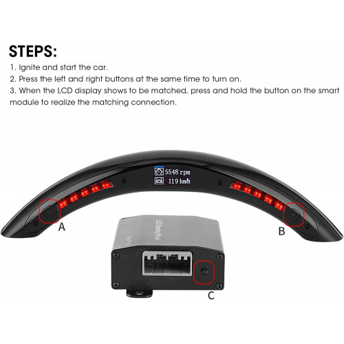 - 【LUZ DE CAMBIO LED】El indicador de cambio LED consta de 5 juegos de LED a cada lado del volante que se iluminan gradualmente en verde a medida que aumentan las RPM del motor. Una vez que se alcanzan las RPM configuradas por el usuario, el indicador parpadea en rojo como recordatorio de carga.