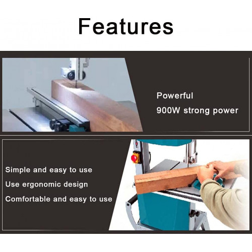 Nombre del producto: Sierra de banda de 12 pulgadas de madera, sierra de mesa deslizante de madera, sierra eléctrica, sierra de corte de alta resistencia, diseño ergonómico Tipo de fuente de alimentación: alimentación de CA Voltaje nominal: 220V Potencia de entrada nominal: 900 (W) Tamaño / diámetro de la hoja de sierra: 305 (mm) Velocidad de corte de carga calificada: vea la descripción Accesorios estándar: ver descripción Rango de voltaje nominal: AC monofásico y DC 50V y abajo