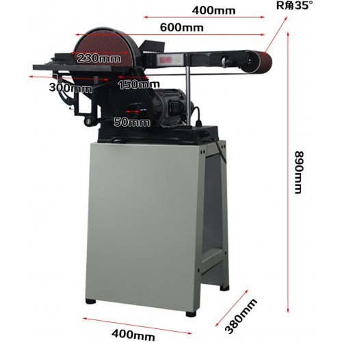 Voltaje: 220 V Poder: 1500W Velocidad del motor: 2850r / min Diámetro del disco: 0228 mm Especificación de la correa: 152 mm Longitud de la correa: 1219 mm Velocidad del tablero de arena: 1500r / min Velocidad de la correa: 5,8 m / s Tamaño de la mesa de trabajo: 300 × 150 mm × Tamaño del embalaje: 4565 × 455 m Peso bruto: 45/40 kg Rango de inclinación de la mesa de trabajo del cinturón: 0-90 grados Rango de inclinación de la mesa de arena: 0-45 grados