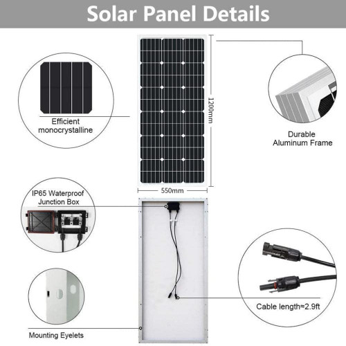 • 5 paneles solares: paneles solares monocristalinos de 100w, la eficiencia de conversión puede alcanzar el 22,9%, incluso en entornos con poca luz también tiene un excelente rendimiento. El vidrio en el está hecho de alta dureza, alta transmisión de luz, resistencia a altas temperaturas, capa de vidrio solar de vidrio completamente templado.
