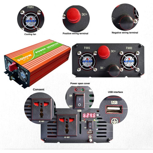 • Inversor de 1000W: puede convertir DC12v/24V a AC 110V/220V/240V para evitar sobrecorriente eléctrica, etc. Puede verificar fácilmente el voltaje restante de la batería y comprender el tiempo de la batería. Es adecuado para todos los electrodomésticos, como hornos de microondas, cafeteras y refrigeradores.