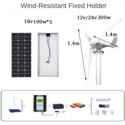 Generador De Turbina Eólica Doméstica De 800 W Y Kit De Sistema De Panel Solar: Generador De Turbina Eólica De 300 W + Panel Solar De 100 W X 5 + Controlador De Carga Mppt (Control De Teléfono) + Inv