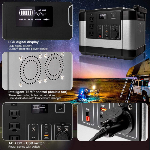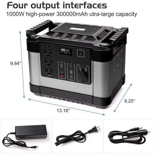 【Salidas multifuncionales】- 9 salidas de alimentación portátiles, lo que le permite cargar hasta 9 dispositivos al mismo tiempo. La fuente de alimentación del generador para exteriores impulsa 1000 vatios nominales y 2000 vatios pico, tiene: 3 salidas de CA, 1 entrada de PV, 1 USB ON/OFF, 1DC ON/OFF, 1 salida de CC, 1 salida de cigarro, 1 salida tipo c, 1 salida USB, 1 entrada de carga de CC para alimentar muchos dispositivos.