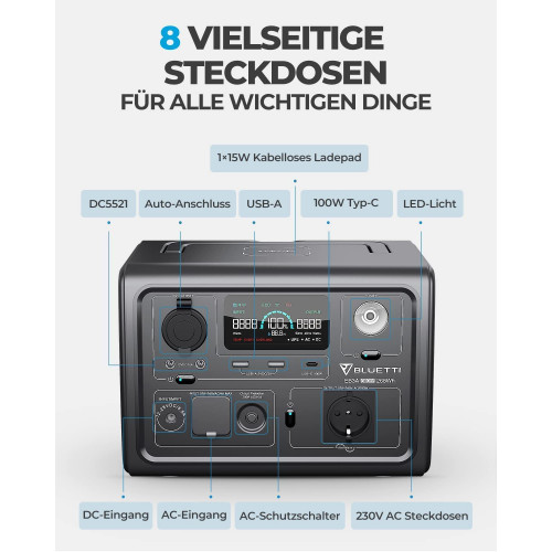 [Convierta la Energía del Sol] - El controlador MPPT integrado admite una entrada solar de hasta 200W, lo que le permite construir un generador solar ideal con el panel solar BLUETTI PV120 / PV200.