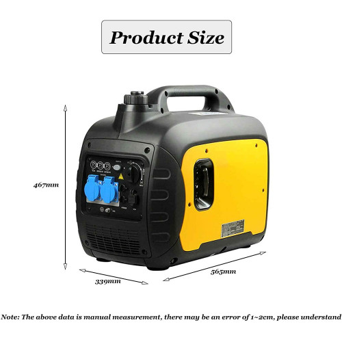 Descripción del producto: Modelo: LC3000i [2.5KW] arranque manual Número de fase: monofásico Tipo de energía: gasolina [Potencia nominal] 230ow [Potencia máxima] 2500w [Capacidad del tanque de combustible] 4.0L [Capacidad de aceite] 0.6L [Consumo medio de combustible] 0,6 l / h [Ruido] 56dB [Método de inicio] Empiece por tirar