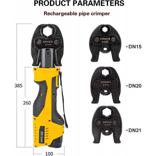 - 【Herramienta de engarzado hidráulica eléctrica】: herramienta hidráulica alimentada por batería para terminales de cobre y aluminio, que ofrece una fuerza de compresión de 1,9 toneladas, puede engarzar fácilmente cables y conectores a tope. La operación automatizada mejora enormemente la eficiencia del trabajo y reduce los costos laborales.