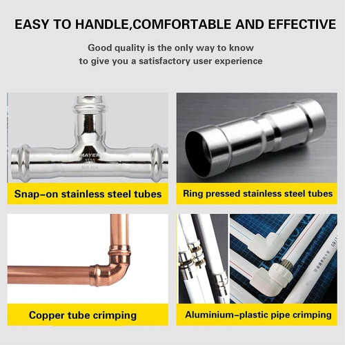 - Amplia aplicación: el engarzador hidráulico es ideal para operaciones de taller y de campo, engarzando mangueras y accesorios de una manera fácil y que ahorra mano de obra. Personaliza las líneas de aire acondicionado de los autos del proyecto. Para los siguientes trabajos de conexión de tuberías: Tubería de acero inoxidable, tubería PEX, tubería de cobre y aluminio.