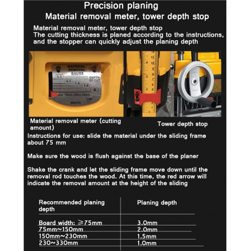 *El espesor de corte y los indicadores de precisión se pueden usar para un cepillado preciso, y el tope de profundidad puede ajustar rápidamente la profundidad.