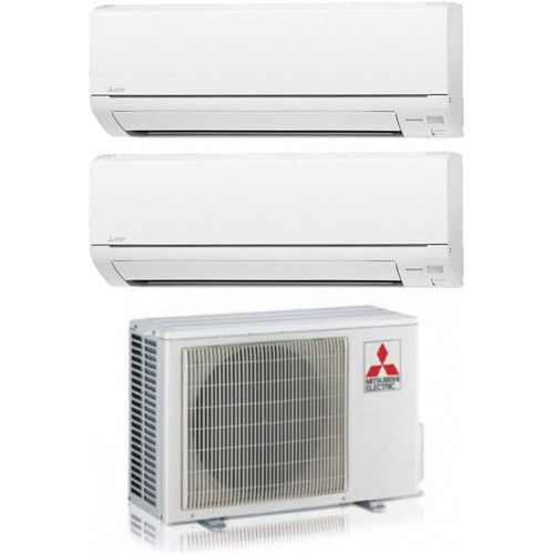 Motor exterior Mitsubishi Electric MXZ-2DM40VA Split Dual Inverter CC de 14000 BTU, Clase A++ y gas R410 + Unidad interior MSZ-DM35VA (color blanco) de 12000 BTU + Unidad interior MSZ-DM25VA (color blanco) de 9000 BTU.