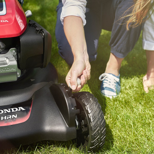 El cortacésped Honda HRN536 VYE incorpora una versión optimizada para este modelo del Smart Drive® de Honda, estándar en la gama HRX, que permite regular la fuerza y posición de la palanca de manera progresiva y precisa, simplemente apoyando las manos en el manillar. El nuevo diseño de la palanca reduce el deslizamiento del pulgar para una mayor facilidad de uso.