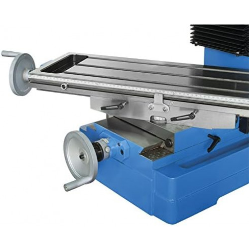 - Tamaño de la tabla: 800 x 240 mm. Cable: 14 mm. Carrera longitudinal: 560 mm. Carrera transversal: 190 mm. Velocidad del portabrocas: 95 - 170 - 280 - 540 - 960 - 1600 rpm.