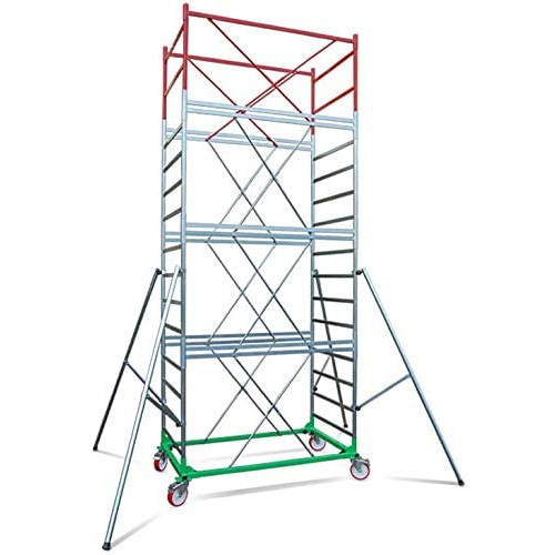 Accesorios: 4 niveladores eco – Composición: completo (norma UNI EN 1004) – El andamio metálico 6 es adecuado y fabricado para los profesionales que necesitan realizar trabajos a altas alturas y no pero con la máxima seguridad y establecida. El andamio Metal 8 está fabricado en acero galvanizado con escalones y horizontales en tubo de 40 x 15 x 1,5 mm. Postes de 40 x 1,5 mm. Con conectores de 48 x 3 mm y diagonales de acero galvanizado de 20 x 1,5 mm. Tiene una dimensión de base de 2,00 x 1,10 m y tiene una altura de espacio que varía de 2,70 m a máximo 18,30 m. La base está compuesta por 4 ruedas giratorias de 200 mm con freno de estacionamiento, i. A diferencia del modelo Metal 5 que puede parecer similar al andamio m6 y estructuralmente más pesado en términos de peso, los elevadores son de 1.20 por lo que son más pequeños que el modelo de metal 5 adecuado para facilitar el montaje y no hacer que el peso de la estructura sea un endicap. Incluso las horizontales son dobles en comparación con el metal 5, esto es aún más establecido. Se identifica en la plataforma Metal 6 quien en los artículos busca la robustez de un tiempo y que hasta ahora ya no se encuentra más. Las ruedas tienen una capacidad de carga de 300 kg. Cad. Capacidad tanto estática como movimiento: La barandilla y la base están previamente galvanizadas y posteriormente pintadas con polvo de poliéster para una protección contra el óxido duradera en el tiempo. Composición: base de 2,00 x 1,14 m. La base está compuesta por 4 ruedas giratorias con freno de 200 mm de diámetro montadas en estructura cuadrada de 50 x 50 mm + 2 horizontales de conexión. Elevación: Los soportes están compuestos. y de 2 tirantes + 2 horizontales de conexión y 4 diagonales de refuerzo. Terminal: la barandilla está compuesta por 2 respaldos laterales + 2 horizontales terminales y 4 diagonales de contramachado. Dimensiones y dimensiones de la estructura: 11,10 m. Altura máxima: 11,90 m. Altura máx. en el plano 9,95 m. Anchura de la base: 1,14 m. Longitud de la base: 2,00 m. Peso: 90 kg. Composición estándar