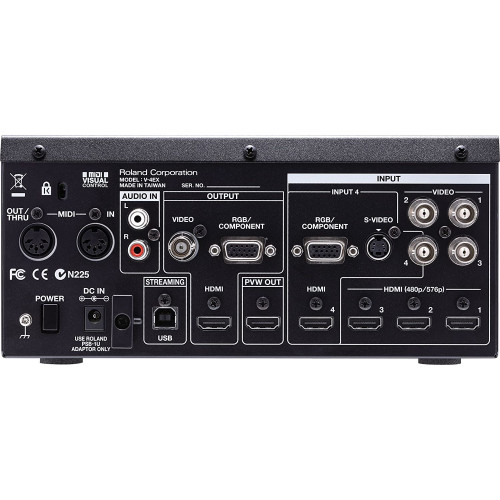 El Roland V-4EX añade entradas y salidas HDMI, transmisión USB, soporte HDCP, pantalla táctil multi-vista y audio integrado al mezclador de vídeo de 4 canales estándar V-4 de la industria.