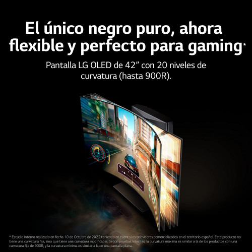 - Pantalla OLED Flexible que te permite 20 grados diferentes de curvatura y ajuste en altura para adaptar la pantalla acorde a la distancia y altura de visionado. Es la combinación perfecta entre un TV y un monitor Gaming