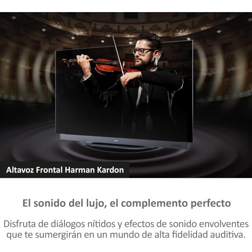 - Tecnologías Dolby Atmos y Dolby Vision: optima calidad de la imagen y un sonido envolvente, disfrutarás de una experiencia cinematográfica en casa; además, el televisor incluye el certificado dbx-tv con más de 40 años de experiencia calibrando el sonido de tu televisor; altavoz frontal Harman Kardon: ofrece un sonido envolvente y potente que te permite disfrutar de tus series, películas, canciones y juegos favoritos con una optima calidad de audio