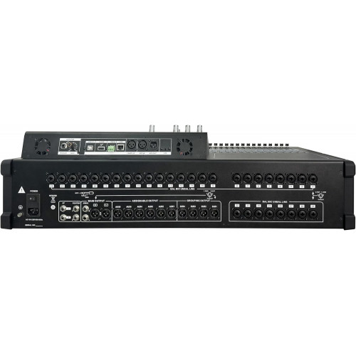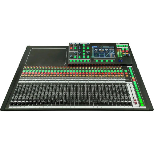 Consola mezcladora de audio digital profesional de 32 canales con tarjeta de sonido integrada.