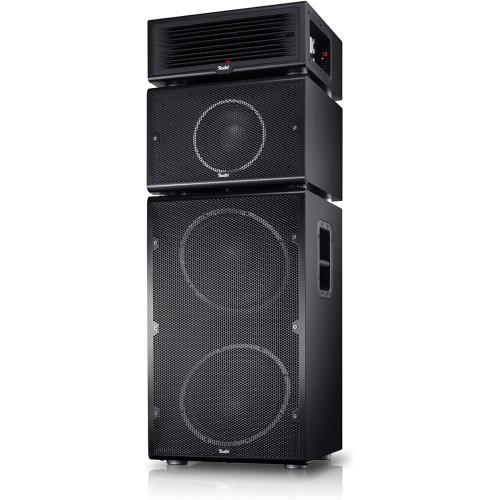 - Dos subwoofers de 300 mm de alto rendimiento, un driver de rango medio de 200 mm y una bocina de tweeter para niveles de sonido de hasta 115dB.